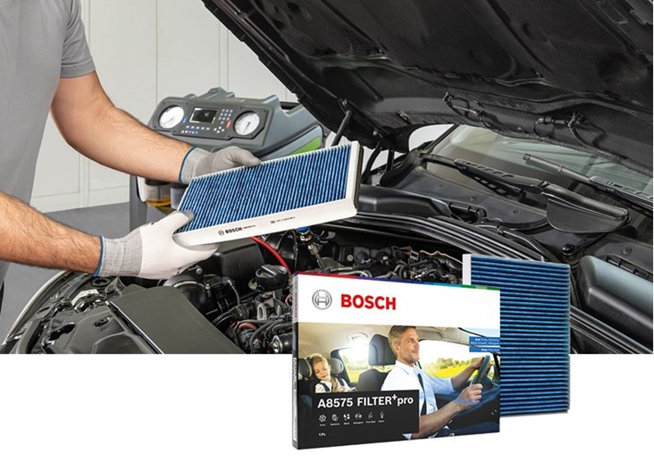 - Wymianę filtra kabinowego na Bosch FILTER+ o właściwościach antyalergicznych, antybakteryjnych i antysmogowych.